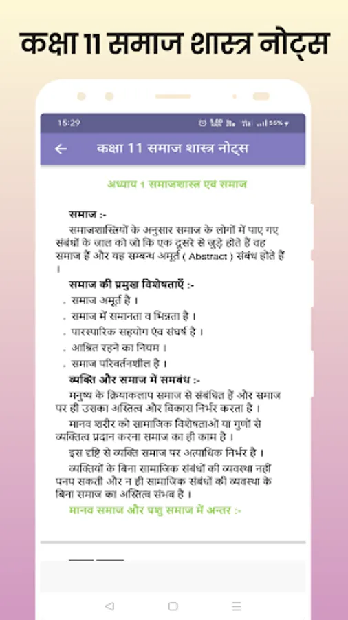 This app is aggregate of chapter wise solutions class 11 sociology samaj sastra notes in most systematically way. It will help in quick revision if you liked our app. Please rate us.