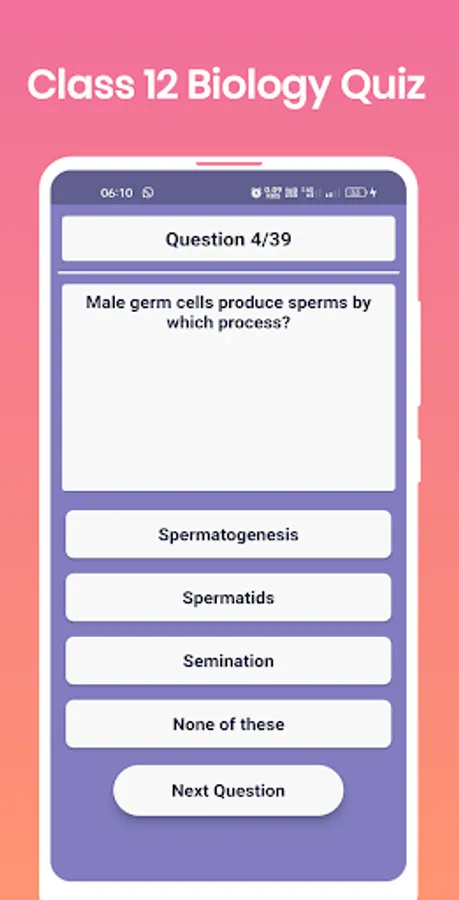 This app contains mcq of class 12 biology quiz in most systematically way. It will help in quick revision if you liked our app. Please rate us.
