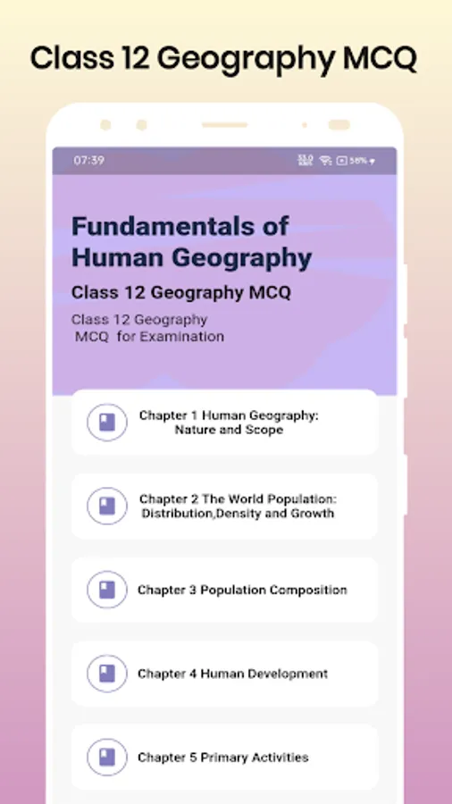 This app contains solution of class 12 geography MCQ in most systematically way. It will help in quick revision if you liked our app. Please rate us.