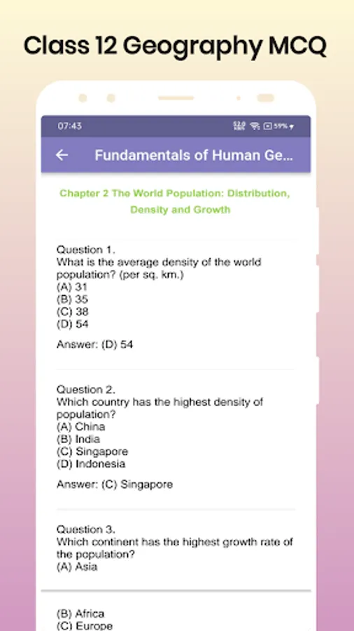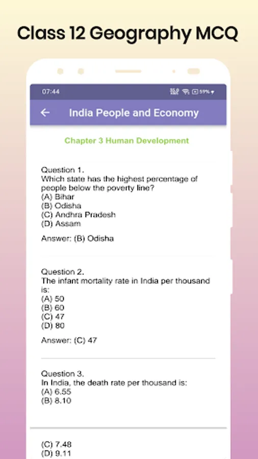 This app contains solution of all the chapters included in Class 12 Geography NCERT Books MCQ for board exam.