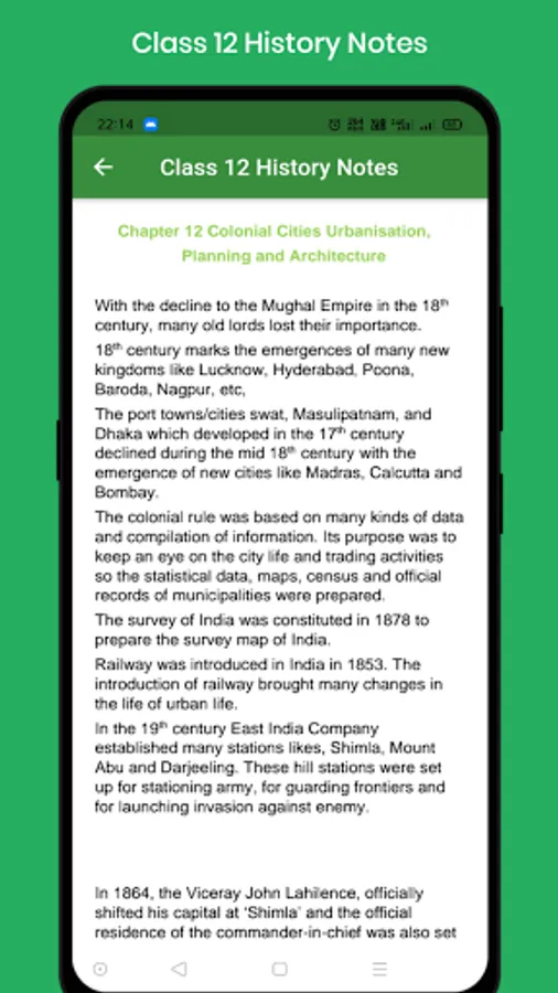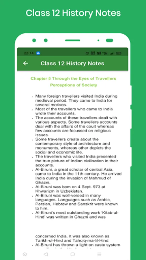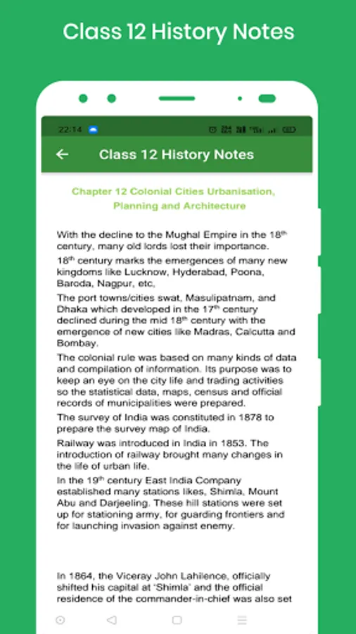 This application contains class 12 history notes Chapter wise. This application contains 15 chapter of class 12 history. I think this app is must have app for class 12 student.