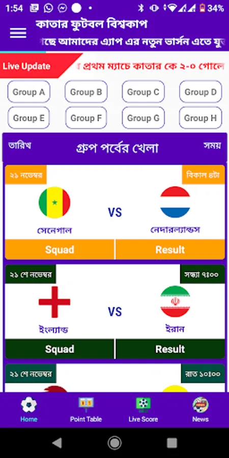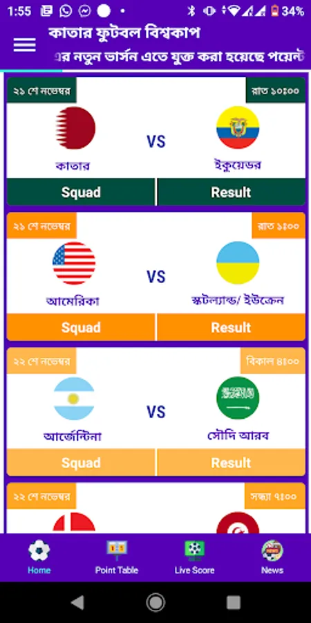 কাতার বিশ্বকাপ 2022 সময় সুচি Screenshots