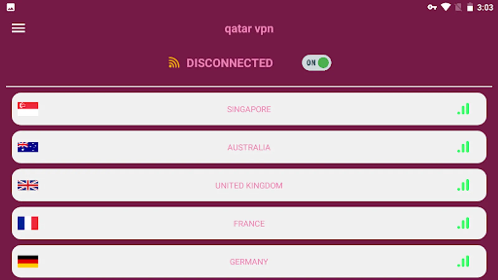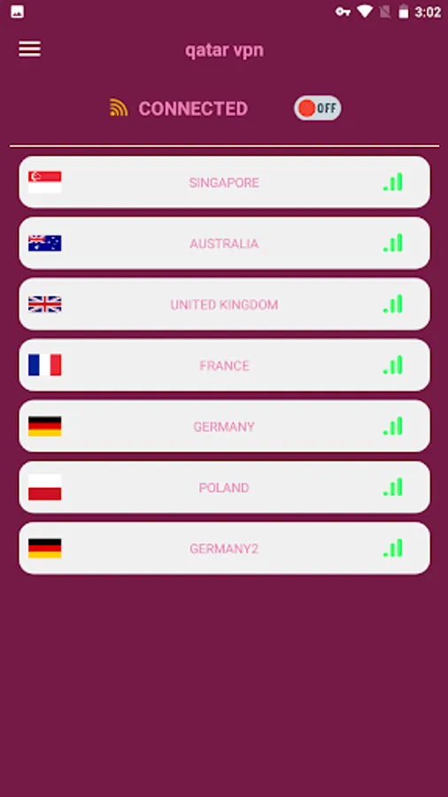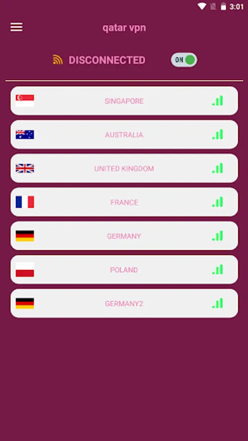 - We made two separate connection buttons for convenience. The first connects to the selected VPN in the list, the second connects directly to the AUSTRALIA and SINGAPORE and UNITED KINGDOM