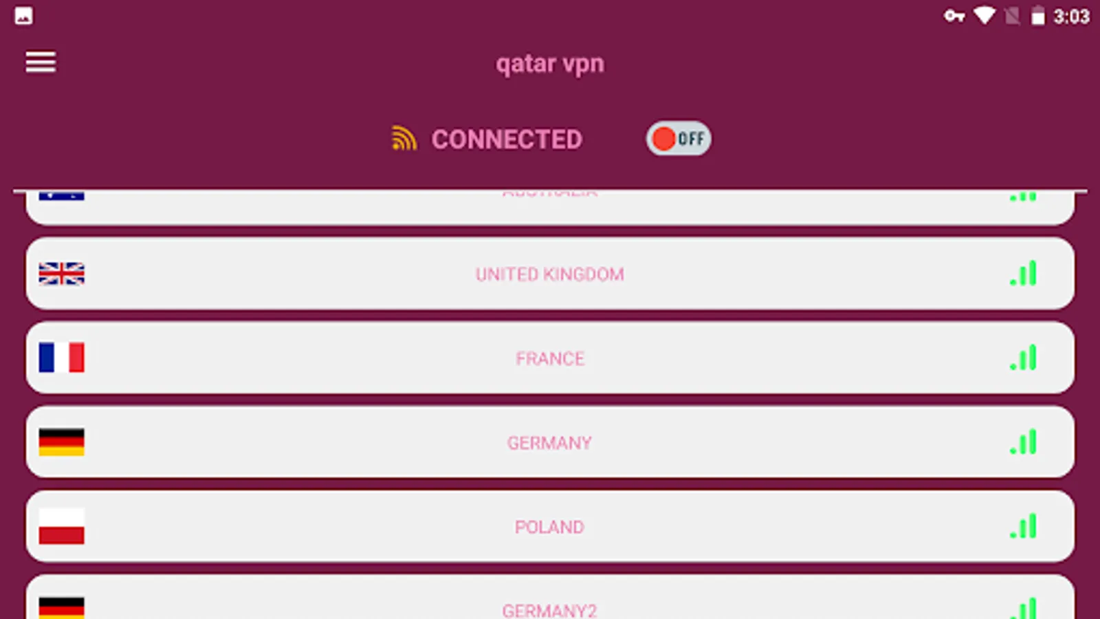 and FRANCE and GERMANY and POLAND VPN server and you do not have to search for a server in the list.