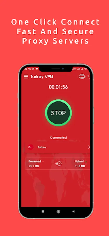 Turkey VPN is a free and unlimited VPN (Virtual Private Network) proxy for Android devices. No need any configuration, just simply touch the button, you can access the Internet securely and anonymously so that you can access any restricted content safely and anonymously.