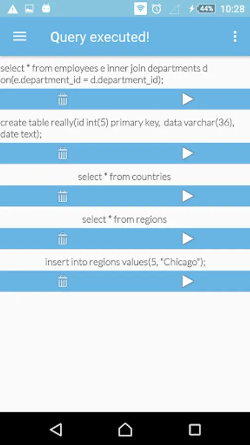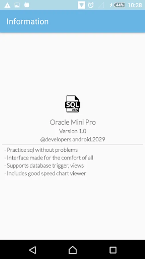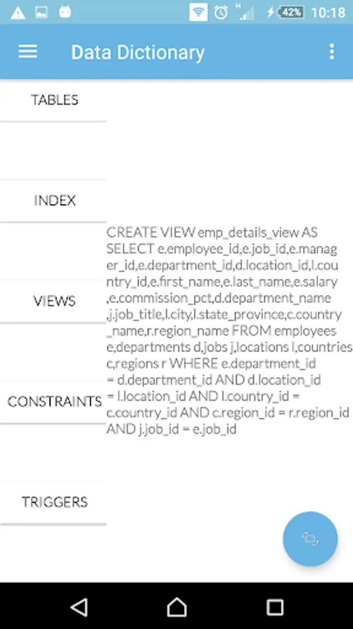 You do not need a PC on hand to practice more on databases, from your cell phone can now be able to query, trigger creation of views, DDL, DML all about hr Oracle schema that is included.