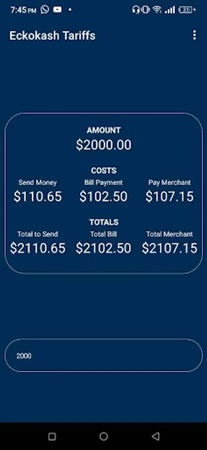 Ecokash Tariffs is an application that lets you check tariffs associated with EcoCash Transactions