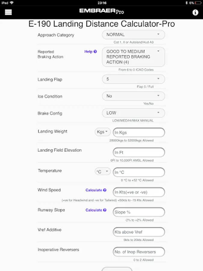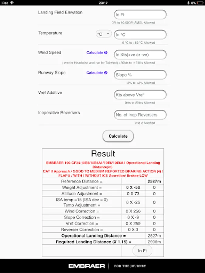 E190 Landing distance calculator Pro is the perfect tool for every E190 pilot flying the 190 series. This app will calculate for you the required operational landing distance in just a few steps.