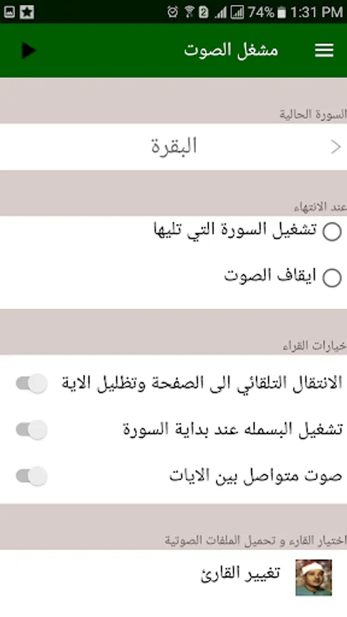 It is an application that displays the Holy Quran and read verses, where the user can choose the reader and listen to read the verses of the Quran.