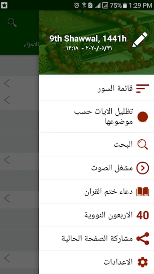 It also helps the user in memorizing the Holy Quran surah and can know the percentage of memorizing it for each surah from the Qur'an.