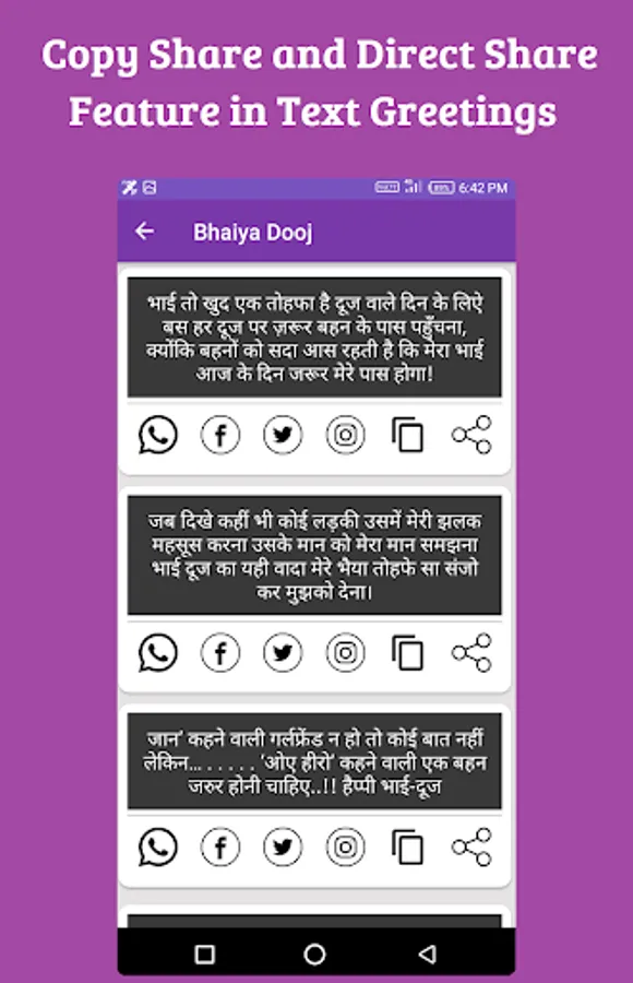 *Copy feature for copy & paste the statuses and quotes and Wishes
