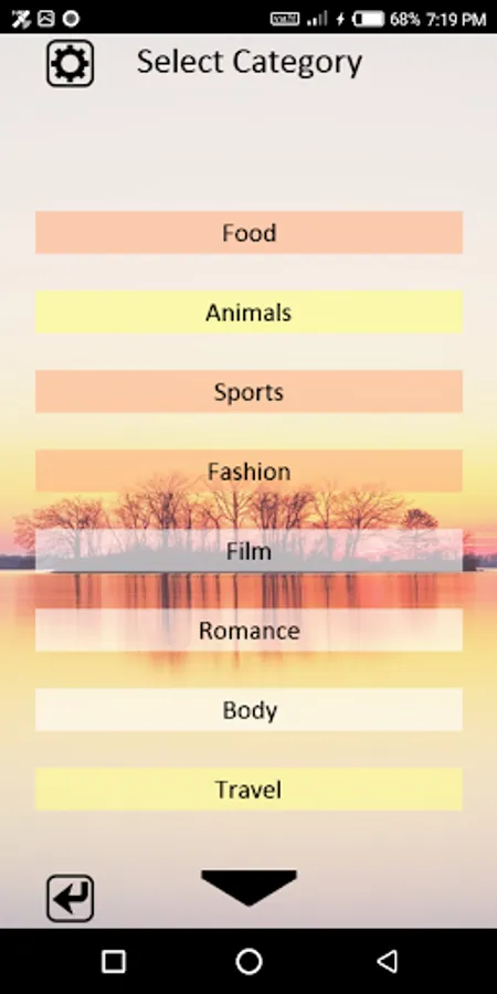 Different-2 Categories to you to play this game like :Food, Animals, Sports, Fashion,