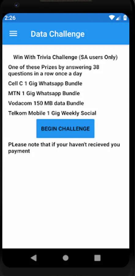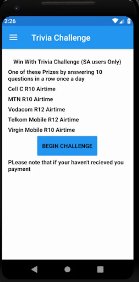 Players are asked questions about different topics and they have to get as many correct answers as possible. Trivia Challenge is split into two parts one a Trivia Practice with unlimited amount of question in multiple choice and the second Trivia Challenge which occurs once a day consisting of 10 questions.