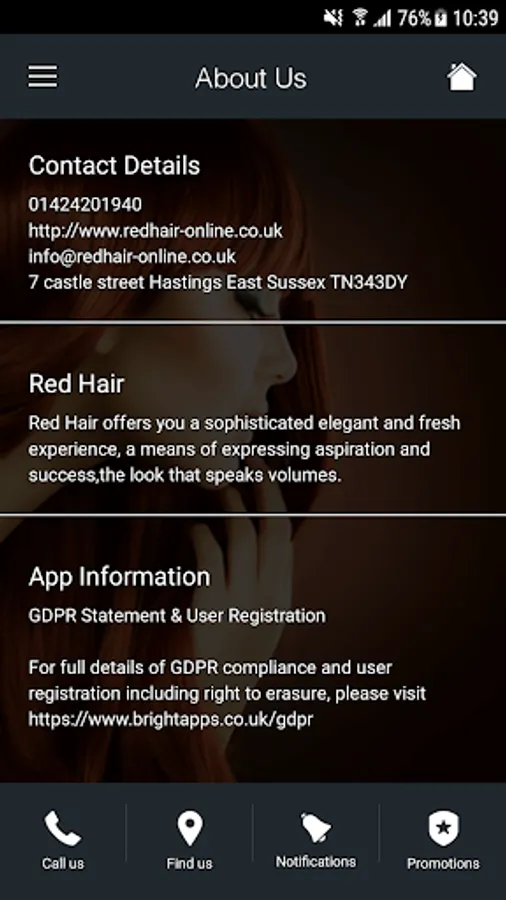 A free Hair Salon App providing client loyalty scheme, online booking, last minute appointments and salon information.
