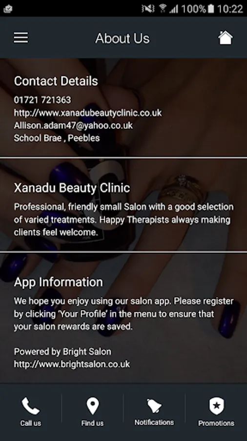 A free Hair Salon App providing client loyalty scheme, online booking, last minute appointments and salon information.
