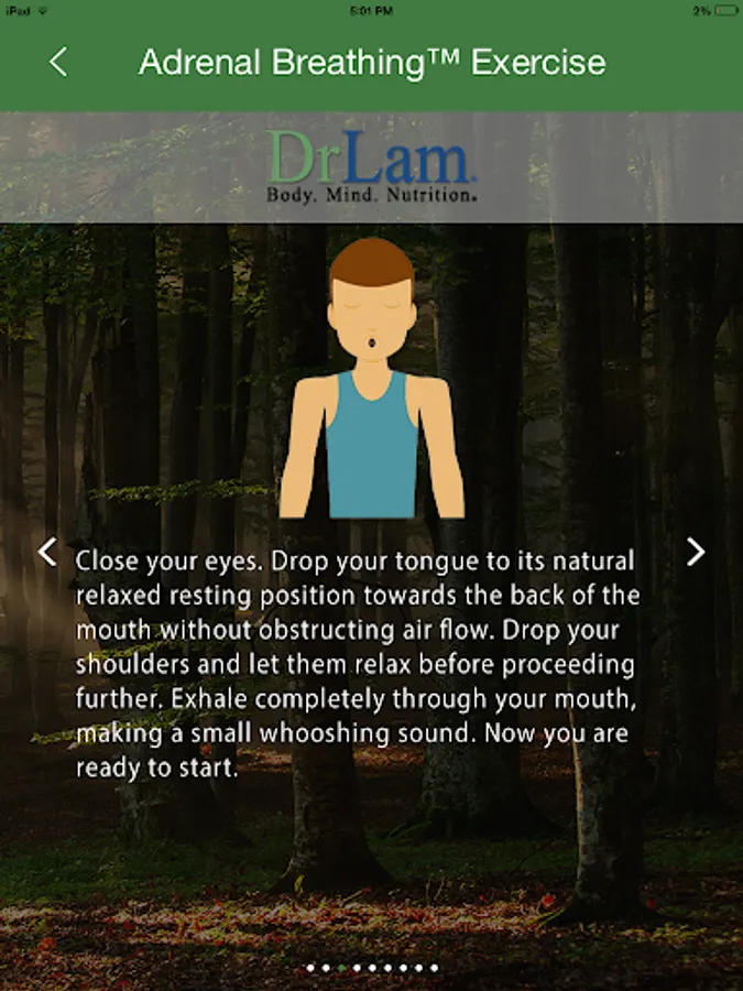 Dr. Lam provides a guided Adrenal Breathing Exercise™ session to soothing background ocean waves or relaxing forest sounds. This guided exercise will help relax and comfort a body plagued with Adrenal Fatigue. Breathing as a healing technique is often overlooked but its significance to your health can not be ignored. Follow along with Dr. Lam as he walks you through a complete breathing exercise, from beginning to end specifically tailored and calibrated to your needs.