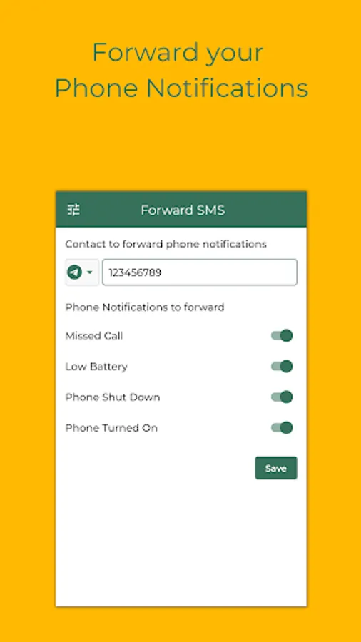 * This is a free SMS Forwarder app that automatically transfers the SMS received on your phone to an email, phone number or Telegram .