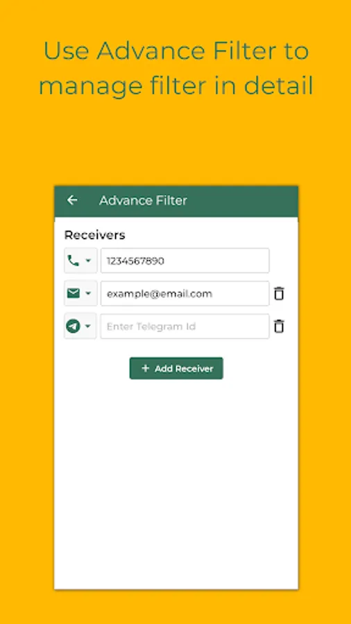 * Advance Filter to add multiple receivers, senders, customize template and schedule.