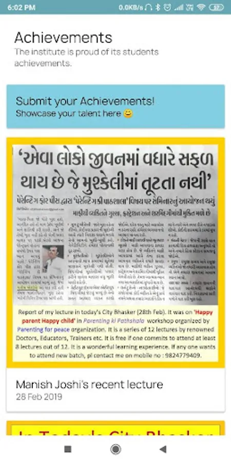 This application contains features like exam updates, past exam papers, class event updates, photo gallery, contact and other such details.
