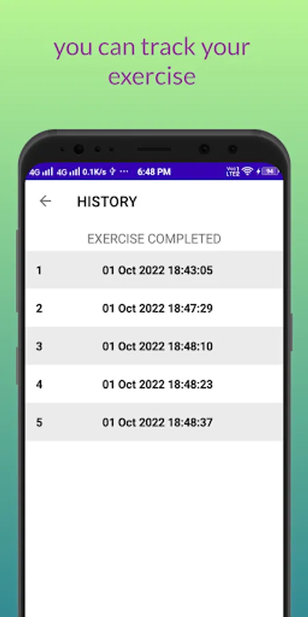 Exercise History Tracking: Stay accountable and motivated by reviewing your exercise history, allowing you to track your progress and achievements over time.