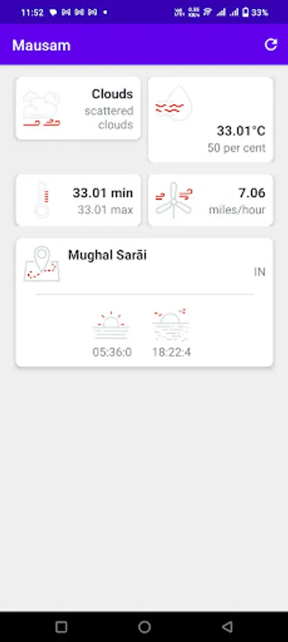 Mausam is your all-in-one weather app, providing accurate and real-time weather data at your fingertips. By using your device's latitude and longitude, WeatherSphere fetches precise information about temperature, pressure, humidity, visibility, wind speed, sunrise, sunset, and more, ensuring that you're always prepared for the day ahead.