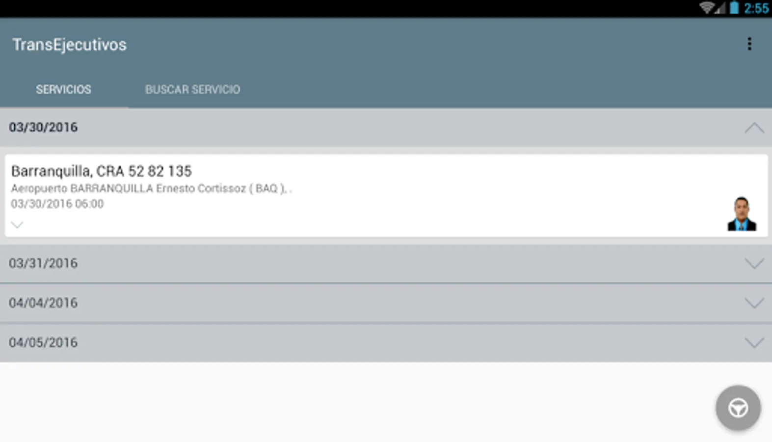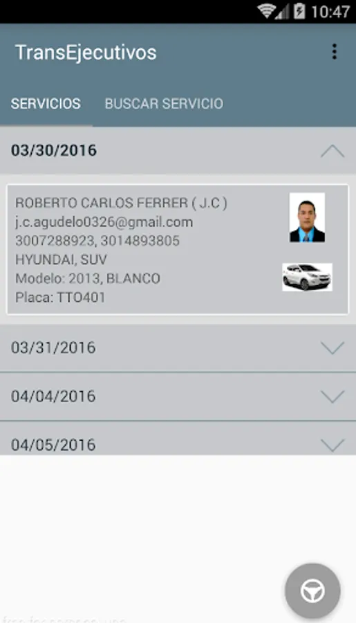 Look at the list of services you have scheduled with executive transport, you can see the designated driver, type of vehicle, plate, model and much more ..