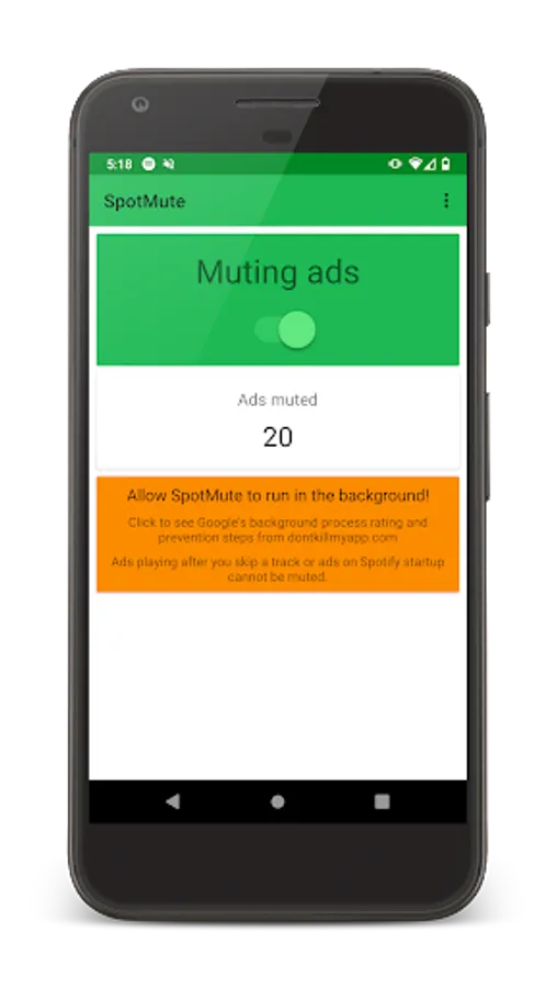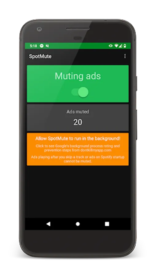 An easy way to test that SpotMute actually works is to keep the screen on with SpotMute open, and have the phone charging.