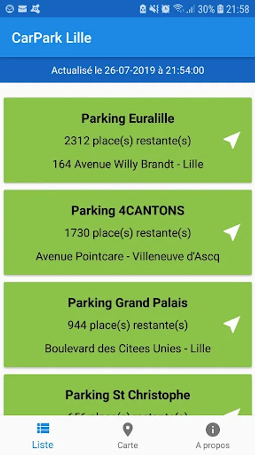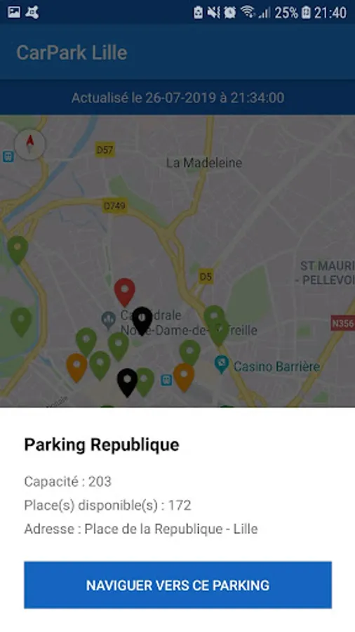 Visualize in real time the availability of public car parks of the Lille Metropolitan Area: