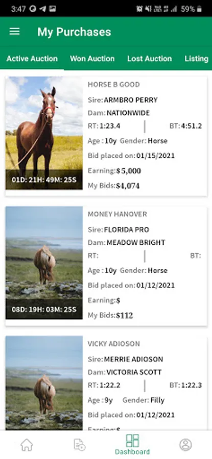 View, list, bid, and purchase harness horses and shares of harness horses from across the United States and Canada, all at your fingertips. If your horse sells, it is FREE!