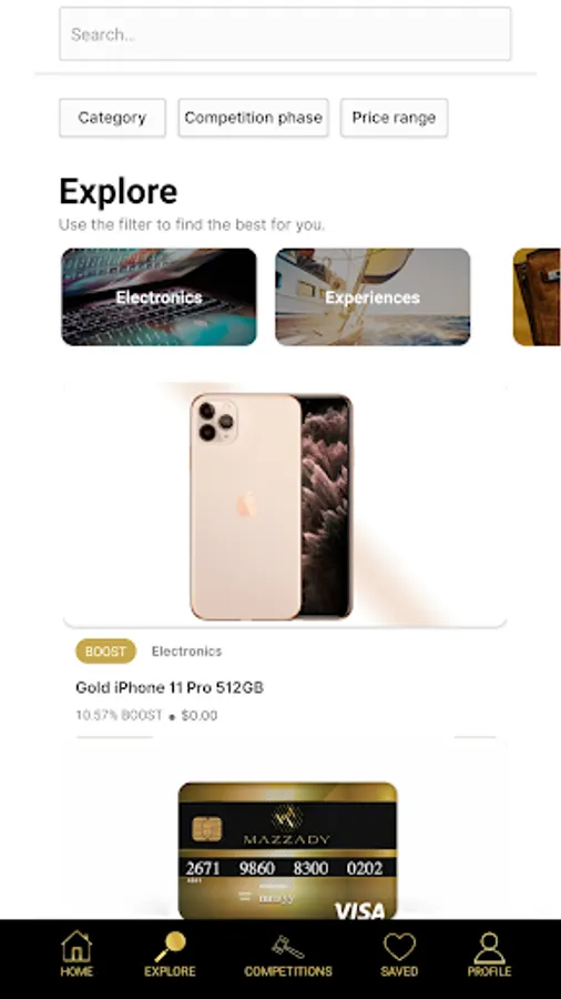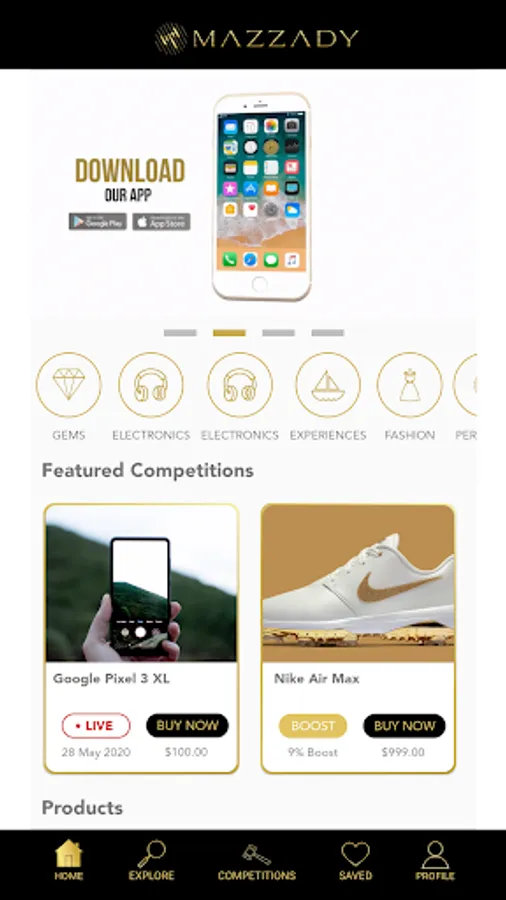 Use Mazzady to shop or participate in competitions/auctions to win your desired products for a fraction of their price! Explore a wide range of products and exclusive experiences & upgrade your lifestyle just in few clicks.