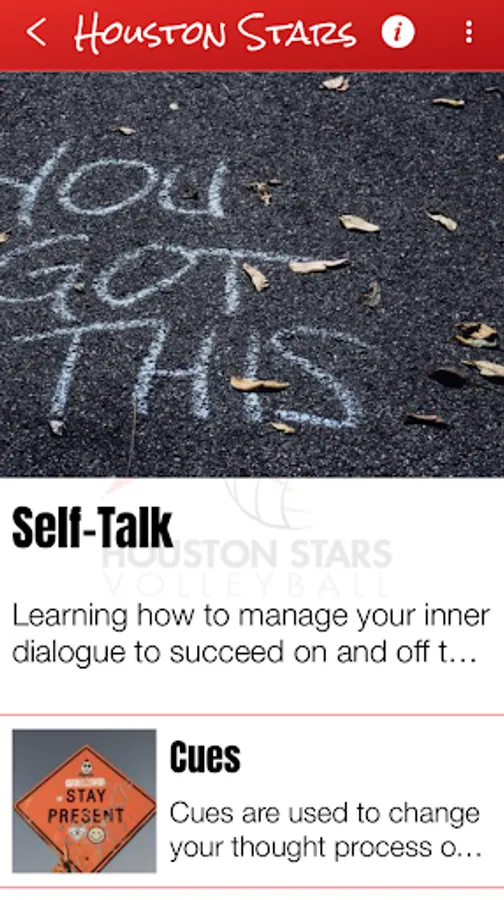 The Houston Stars Edge is a volleyball-specific mental skills app designed for players, parents, and coaches. The app is used by Coach Dishman to be a mental skills resource for players, parents, and coaches. Topics are introduced weekly and are designed to help players develop their mental approach and refine their skill development through a goal-setting program. There is a section for users to ask Coach Dishman questions specific to them. There are also specific sections for players, parents, and coaches. The Cingular Focus Edge app contains over two hundred pieces of content in the form of articles, videos, assessments and PDFs for its users to explore. Coach Dishman has a Master's in Sport Psychology and played baseball at Duke University and in the Atlanta Braves Organization. The Cingular Focus Edge app allows his expertise to be your resource during the volleyball development process.