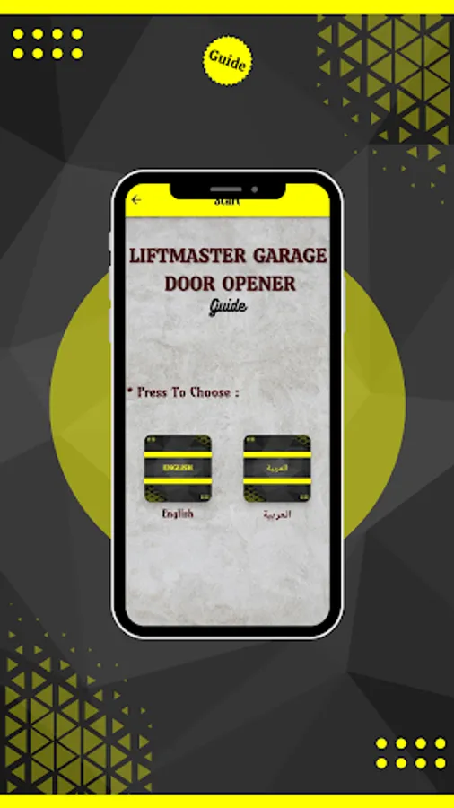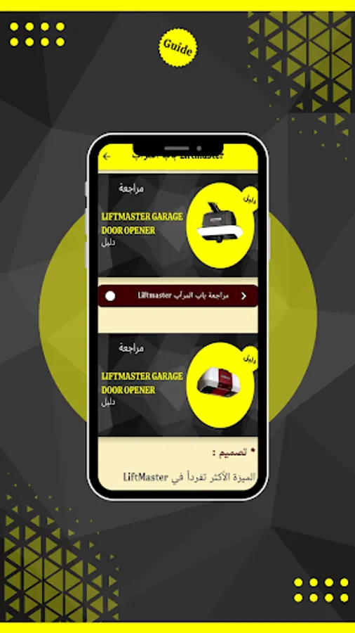 The app Liftmaster garage door guide is available in two languages : Arabic and English.