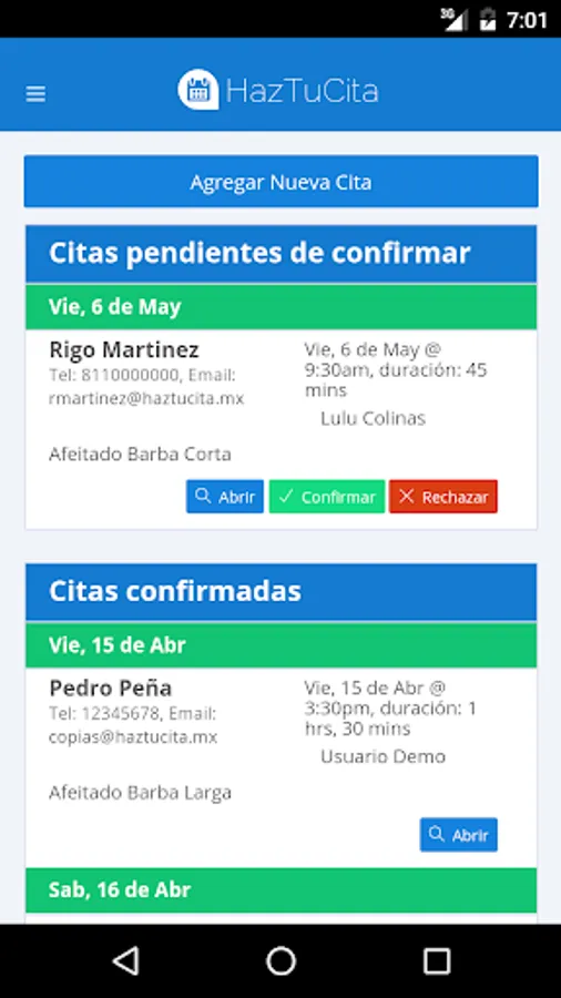 HazTuCita, manages the agenda of your online business. Accepts appointments from your web site, or using your free website that provides you HazTuCita. Your schedule will always be organized.