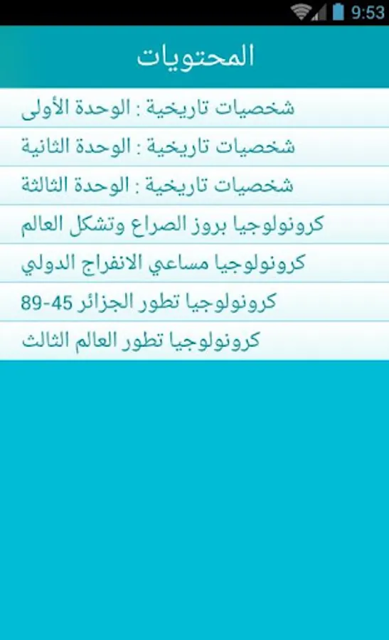 History game events and characters is an application that offers third-year high school students fun in reviewing and memorizing history material and thus preparing well for examinations and assignments as well as the baccalaureate exam, and this is according to the new program of the Algerian Ministry of Education