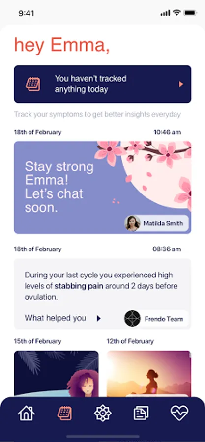 If you're trying to make sense of suspected symptoms, or you’ve already been diagnosed with endometriosis — you’re in the right place. Helping you get to a diagnosis faster, FrendoApp is your community, social network, health tracker and insight tool, all in one app.