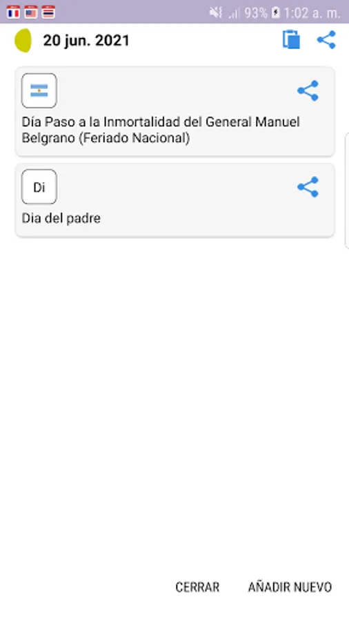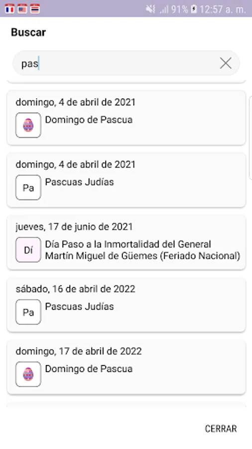 It is possible to show only relevant events, such as National Holiday and Observances in Argentina. It is also possible to set notifications of events. You may easily find the events by searching using keywords.