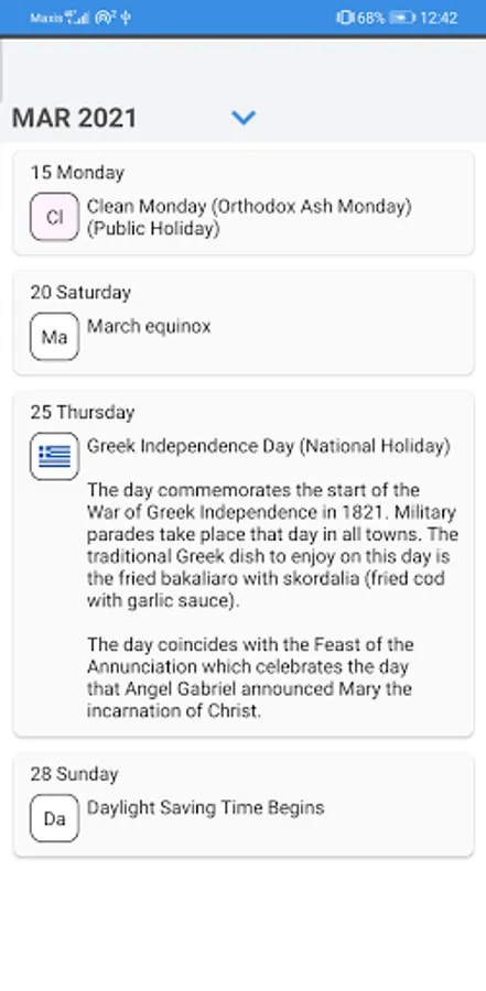 It is possible to show only relevant events, such as National Holiday or Observances. It is also possible to set notifications of events.