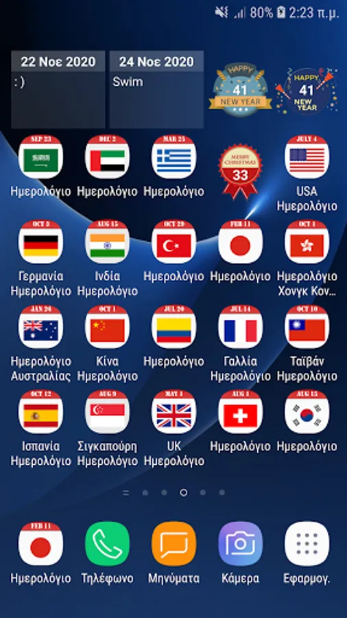 You may set the Greece Calendar as widget. There are also widgets for Christmas and New Year count down.