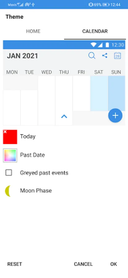 - Theme for calendar. You may use dark or light theme. You may set your background and font with your preferred color.