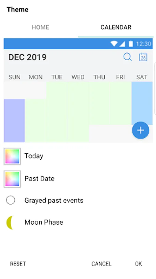 - Theme for calendar. You may use dark or light theme. You may set your background and font with your preferred color.