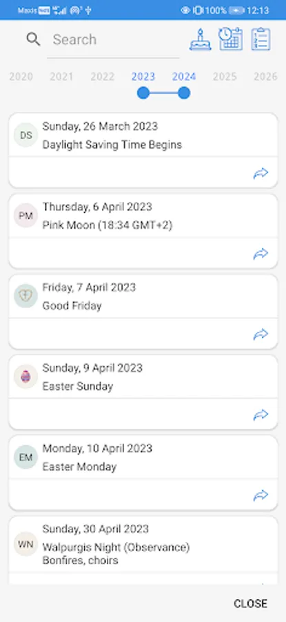 - Search feature. Able to filter search results by birthdays, events or tasks. It is also possible to filter by year range.