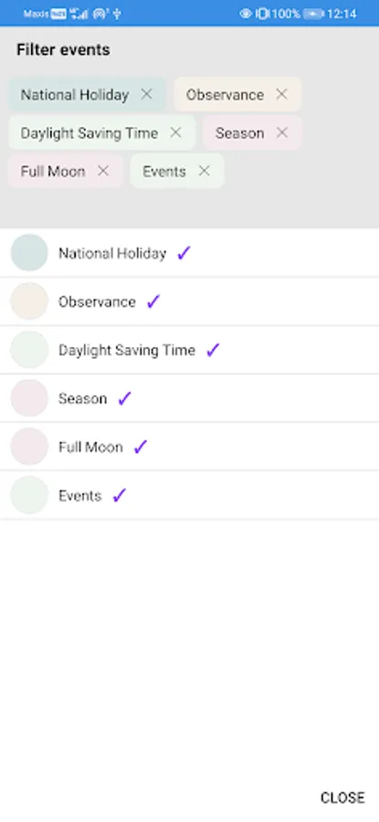 It is possible to show only relevant events, such as National Holiday, Observances or Daylight Saving Time. You may easily find the events by searching using keywords. It is also possible to set notifications of events.