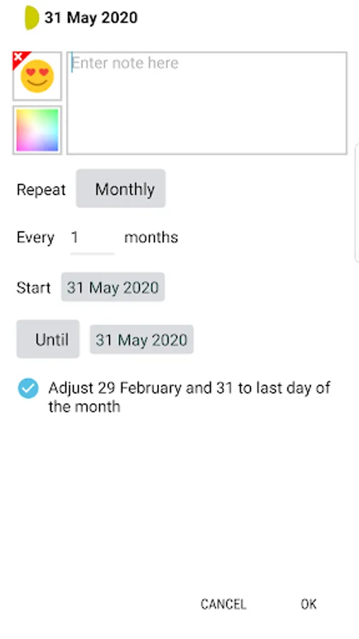 - Option to create new repeated events using a user defined interval.
