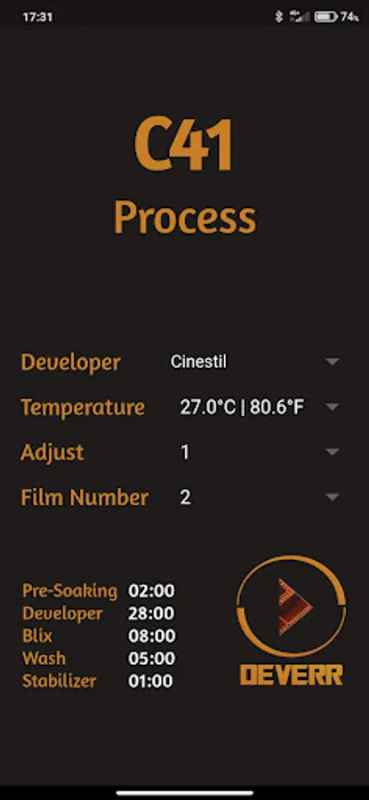 Deverr is a darkroom timer and database application for C-41 process home developers.