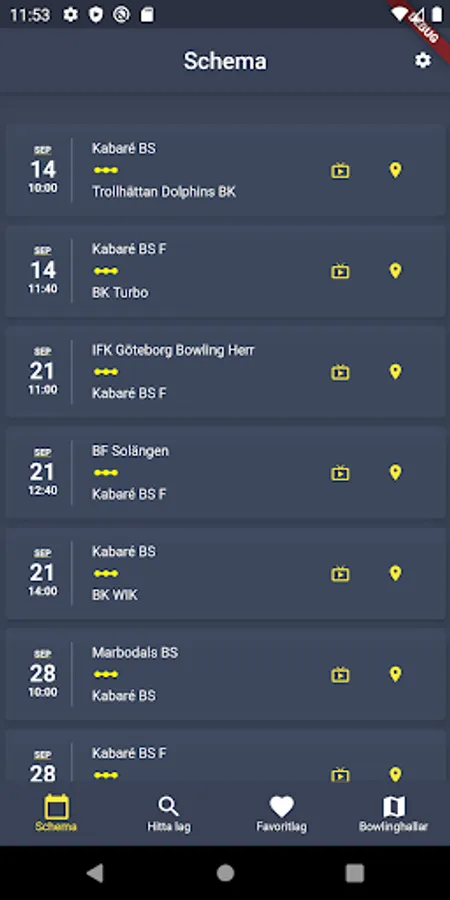 Keep track of when upcoming matches are for your teams, see results and get help finding the bowling alley or why not watch live from live scoring!
