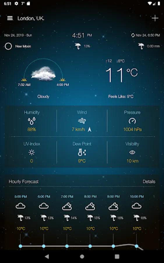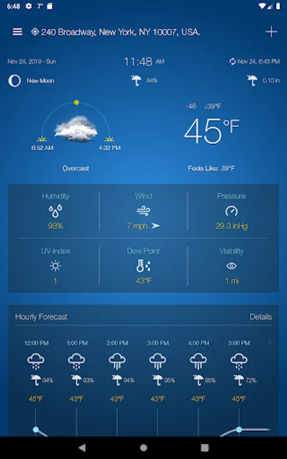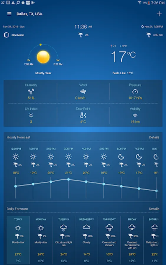 • Hourly weather forecast.