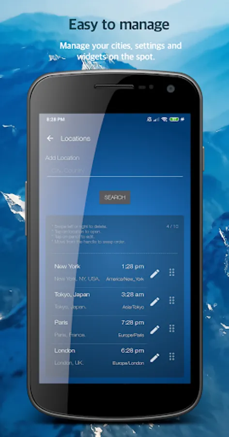• Follow weather and forecast for multiple locations.