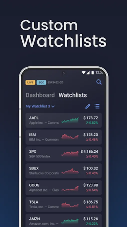 Real-time streaming quotes for equities and derivatives in configurable watchlists