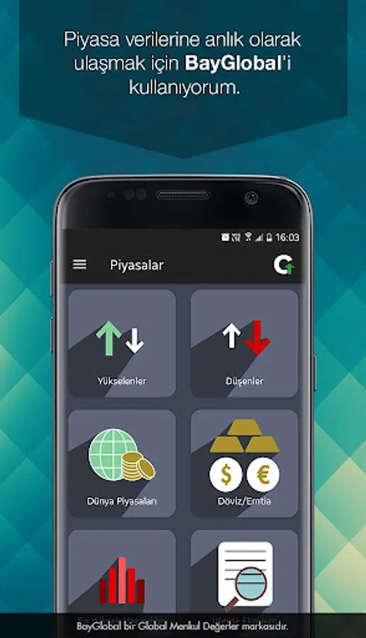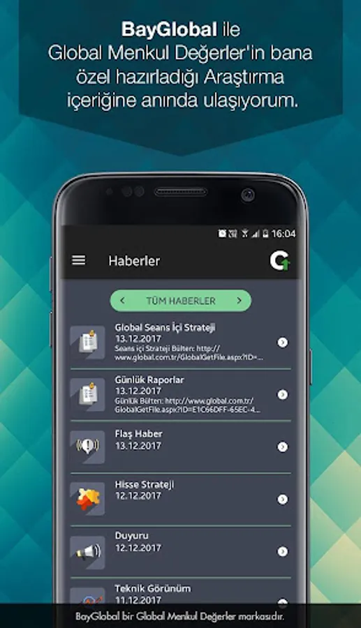 With BayGlobal, Global's award-winning Research Department sends you investment opportunities based on your personal preferences. The application follows the markets and lets you know via instant messages and videos. It is then up to you to trade with fast execution and live exchange data.