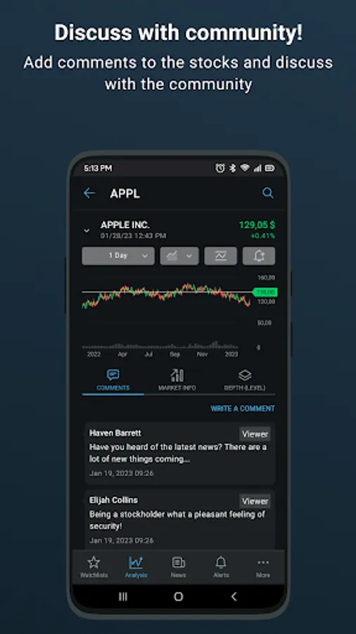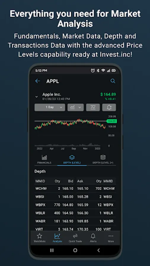 Our advanced terminal includes Level 1 and level 2 data, historical financials, analyst ratings, valuation metrics, watchlist monitoring and research, and tons more.